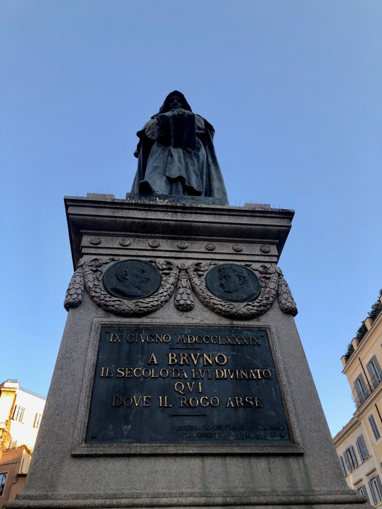 We met for our street food tour at the Fillippo Bruno statue in Campo di Fiori; it commemorates the place where the young friar was burned at the stake in 1600 for heresy. He is now seen as a martyr for free thought, and his statue and gaze loom over that end of the piazza. Campo di Fiori was my favorite piazza in Rome. It was friendly, bustling, dotted with restaurants, and located near a lot of great sites.