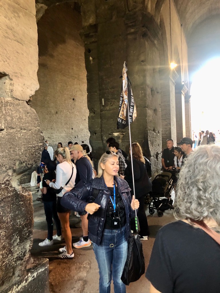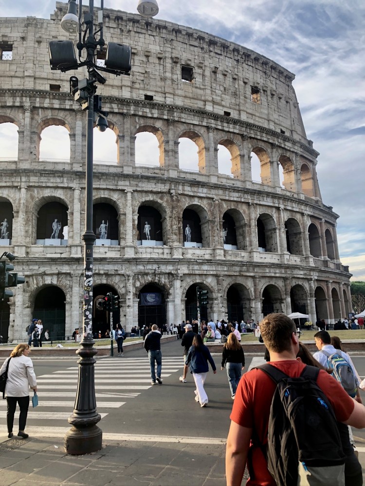 Day 2 – We began our first full day with pre-booked tours: Colosseum, Roman Forum, Palatine Hill; and an evening street food tour. Both of these were booked at home on Get Your Guide. Since our hotel was quite far from the Colosseum, we took a short walk (half a mile) to the Metro stop near the Spanish Steps. The subway stations and trains are clean and safe. Ascending from the “Colosseo” stop brought us face-to-face with the Colosseum. Breathtaking.