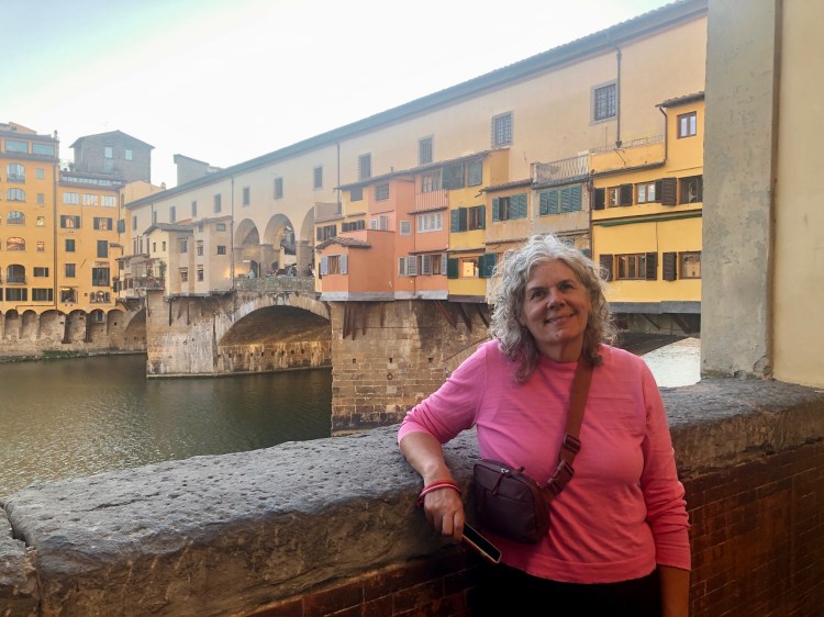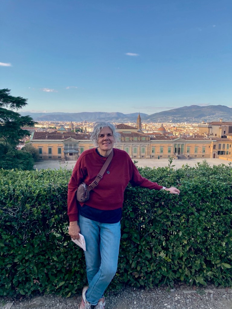 By the time we got checked in it was cappuccino time and we took that opportunity to enjoy our treats on benches around Piazza Santa Croce. We meandered to the famous Ponte Vecchio. We walked across the Arno to the Oltroarno (translated as “beyond the Arno”). Like the Trastevere in Rome or the left bank in Paris, it is an area outside the city center with lots of gems. We walked toward the Piazza di Pitti, the gateway to the Boboli Gardens.