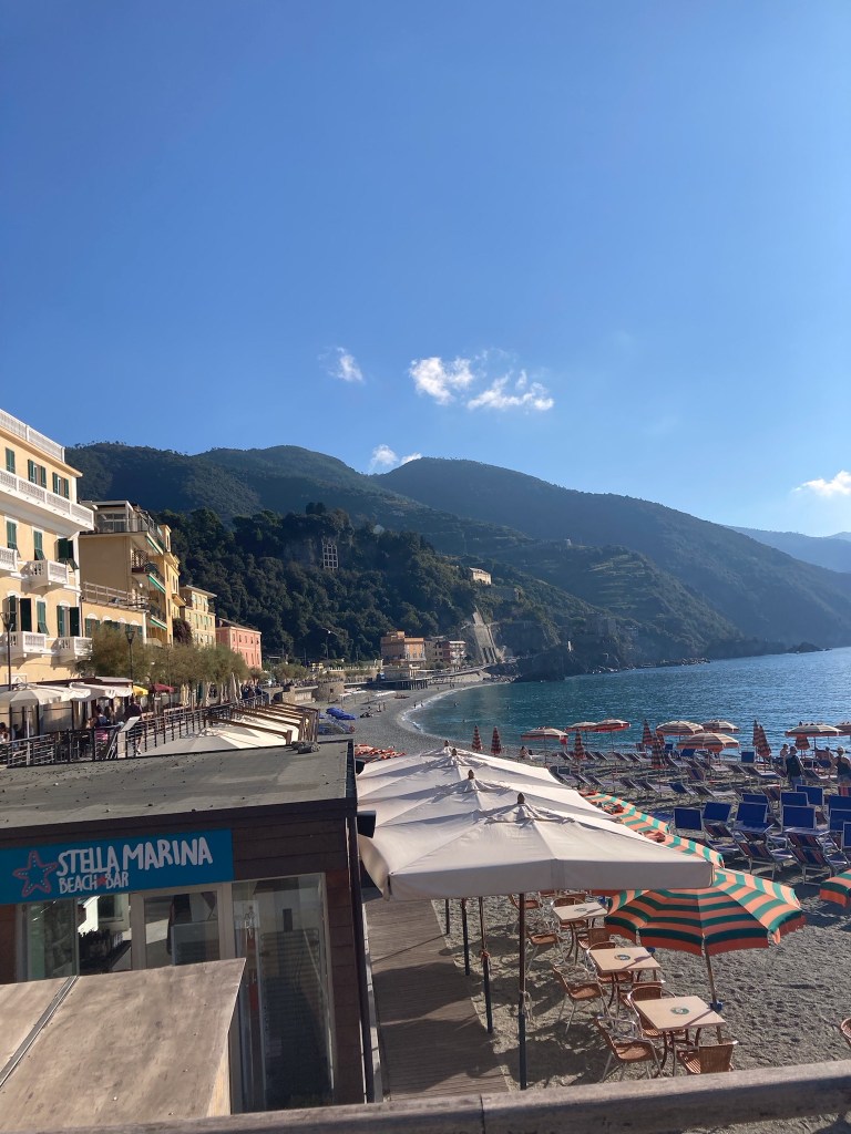 L-R: Beachside in Monterosso, descending into Vernazza from Blue Trail