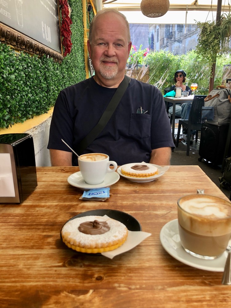 We began a tradition in Trastevere that we extended across our trip: afternoon cappuccino and pastry. The cappuccino curfew (a belief that consuming milk after a meal will mess with your digestion, with which Italians are obsessed) may exist for Italians, but they will serve tourists whatever they want whenever they want it. At the Long Island Night Caffe, we encountered our first occhi di bue (bullseye) cookies and an even more important tradition of not sharing one but sharing two.