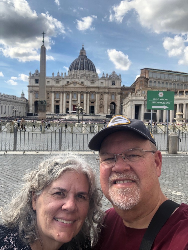 Vatican City is so close to the Tiber River (Tevere in Italian) and there are lovely bridges and neighborhoods nearby. Once again, my husband’s Packers hat touched off some conversations, most memorable from a couple from Liverpool who thought the G was for Georgia. We explained the Packers G came first and other inconsequential facts about the Bulldogs.