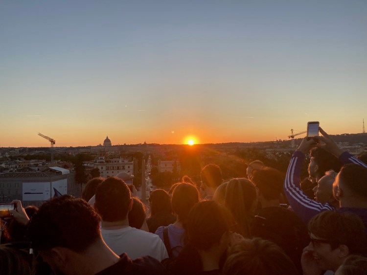 A short walk away is the Terraza Pincio from where you get the best view of the sun setting over Rome. Of course, lots of people know that and the lines start forming early. The Terraza overlooks the Piazza di Popolo and you see St. Peter’s Basilica in the background also. It’s very lovely but unless you’re first in line, you’re not getting a picture without layers of other people holding up their phones to take the picture.